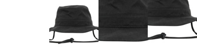 Denim bucket hat. Denim look in washed-out light blue or black grey. Circumferential brim. Decorative stitching. Stability is provided by an extra sewn-in circumferential band.