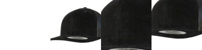 Retro cap. Classic cord. Casual mesh. Curved visor with plenty of decorative seams. Practical snapback closure.