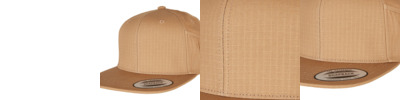 Snapback, flat visor, six-panel. Certified amfori BSCI, WRAP and Sedex.