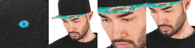 From left to right. Snapback. No cut. No pockets. Made with organic cotton.